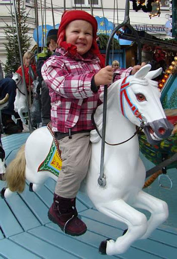 28. November mit Patentate Petra auf dem Ulmer Weihnachtsmarkt Karussel fahren.